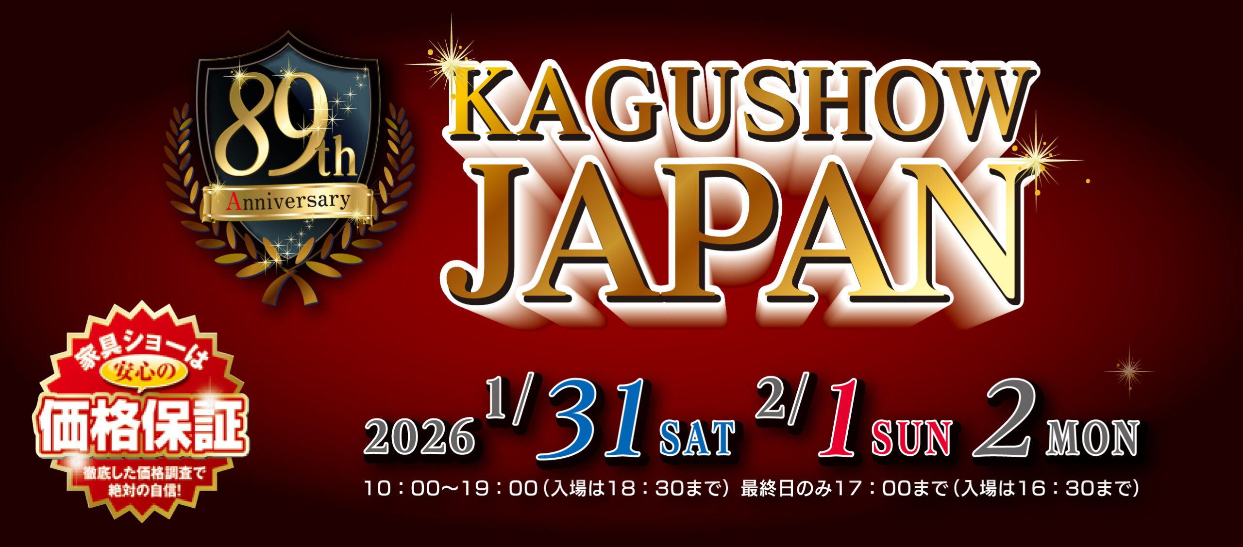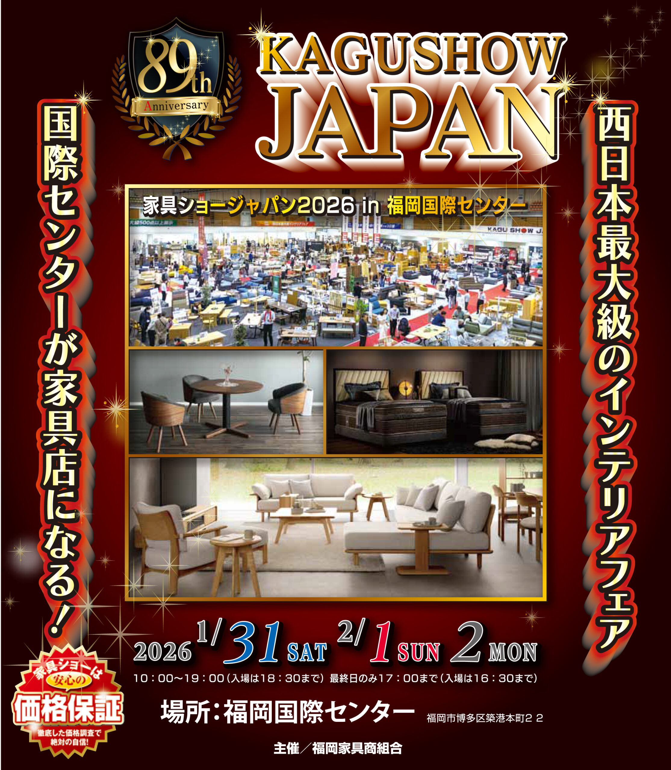 西日本最大級!家具の展示即売会<KAGUSHOW JAPAN>開催します。今回で89回目を迎える恒例